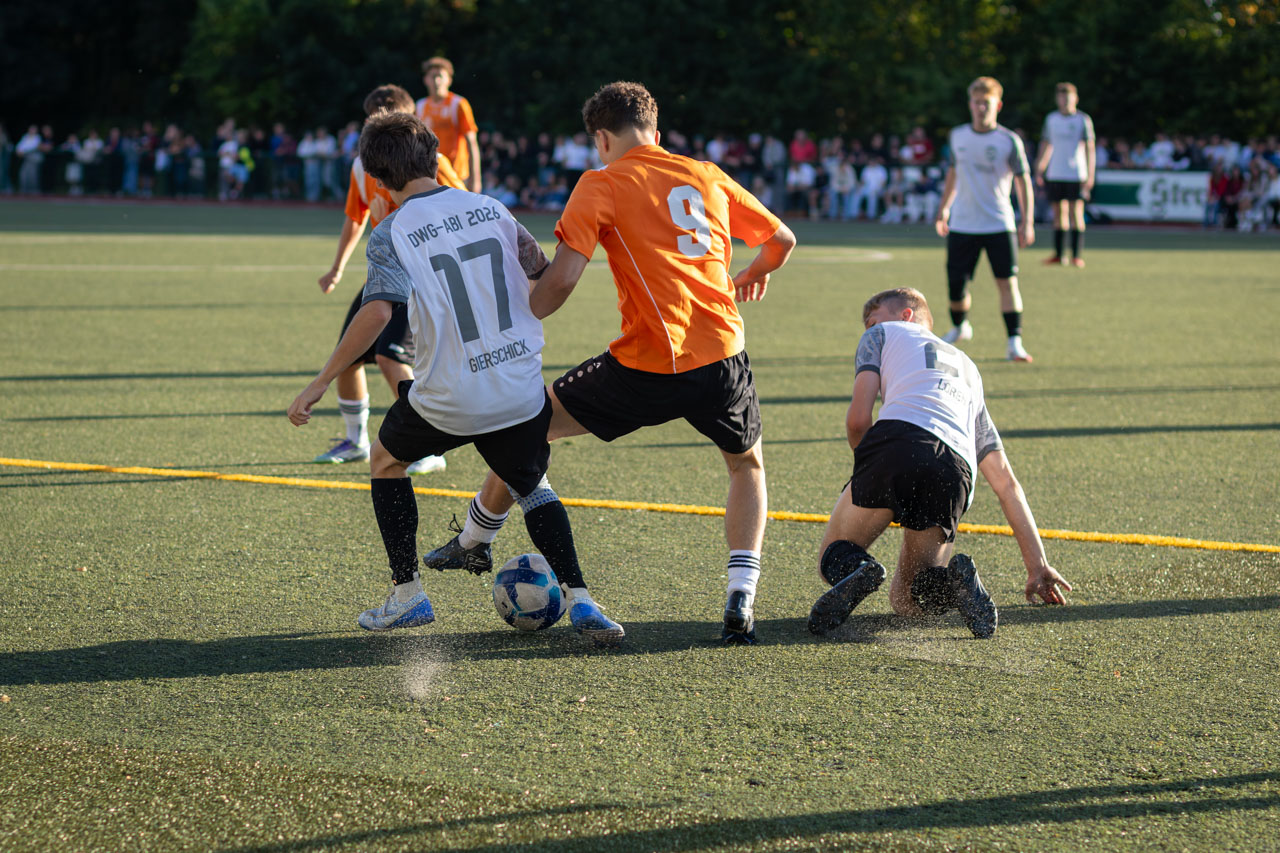 Das Derby war nicht nur ein spannender Wettkampf, sondern vor allem ein tolles Gemeinschaftserlebnis. Auf dem Platz haben unsere Spieler alles gegeben, am Spielfeldrand wurde jede Aktion lautstark unterstützt. Der Applaus und die Anfeuerungen – ob von unserer eigenen Schulgemeinschaft, vom gegnerischen Gymnasium oder von allen anderen Zuschauerinnen und Zuschauern – haben gezeigt, dass Sport verbindet.