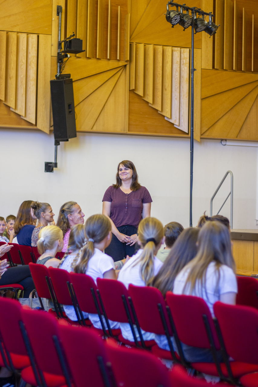 Nach einem kulturellen Einstieg folgten auch die obligatorischen Begrüßungsworte durch den Schulleiter und es wurden die neuen Klassenleiterinnen vorgestellt. Weiter ging’s dann im Klassenverband. Voller Wissbegierde wirbelten unsere neuen Mitschüler bei einem ersten Rundgang durchs Schulhaus, bekamen von den Klassenlehrerinnen sowie älteren Mitschülern alles gezeigt und viele Fragen beantwortet.