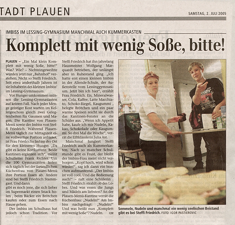 Imbiss im Lessing-Gymnasium manchmal auch Kummerkasten