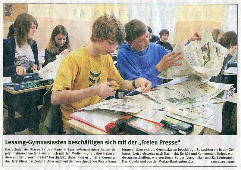 In diesem Sinne führte die Klasse 9a mit der "Freien Presse" ein Projekt zu Printmedien durch, wobei die Techniken einer klassischen Zeitungsrecherche vermittelt, ausprobiert, vielleicht wiederentdeckt wurden.