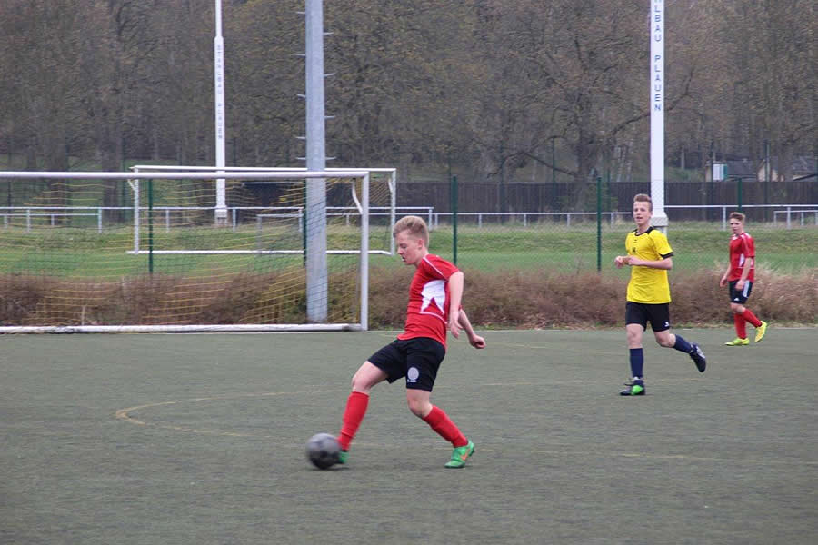 Nach mehreren erfolglosen Anläufen in den letzten Jahren konnten sich nun die Jungen der Wettkampfklasse III (Jahrgänge 2000-2002) im Kampf um den heiß begehrten Platz des Vogtlandkreises durchsetzen. Als Sieger der Vorrunde im Herbst 2015 ging es nun am Freitag, 15. April 2016, gegen das Julius-Mosen-Gymnasium Oelsnitz im Kreisfinale um den Sieg und damit um den Einzug in das Regionalfinale. Im VFC-Stadion Plauen genossen unsere Spieler quasi Heimvorteil, da ca. die Hälfte unserer Mannschaft selbst im Nachwuchs des VFC aktiv ist. So zeigten sie den Oelsnitzern auch gleich wer hier „Herr im Haus“ ist und gingen bereits in der 4. Minute mit einem sehenswerten Freistoß durch Anton Tödtmann in Führung. In der gesamten 1. Halbzeit (gespielt wurde 2 x 35 Minuten) ließ unsere Abwehr kaum Torchancen der Oelsnitzer zu. Nach vorn erarbeiteten sich unsere Spieler selbst gute Gelegenheiten.