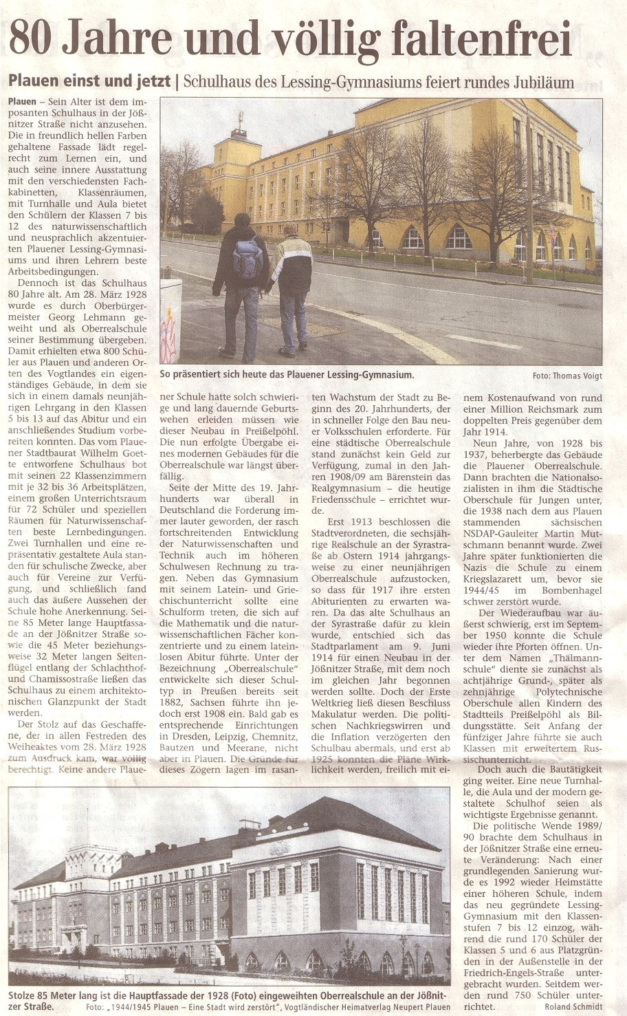 1995der erste Abiturjahrgang verlässt das Lessing-Gymnasium Plauen
