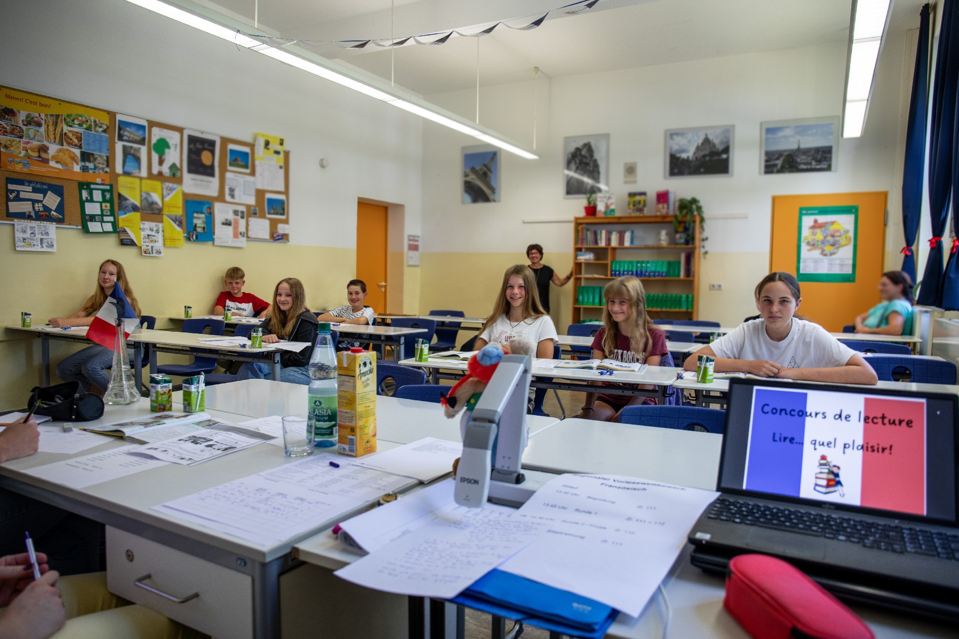 Im vergangenen Schuljahr ermittelten wir am 23. Juni 2023 im Rahmen des schulinternen Vorentscheids die besten Vorleser im Fach Französisch der Klassenstufe 6: Eddie Reiher und Patrick Milos, die nun die Klassenstufe 7 besuchen.
