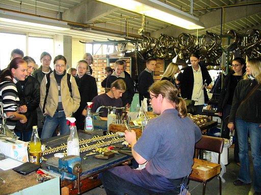 besichtigen und den Mitarbeitern der Firma bei der Herstellung von