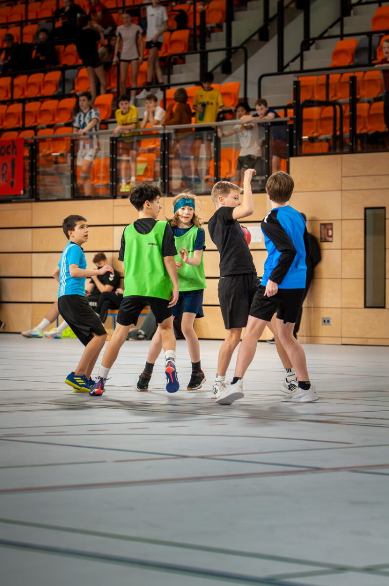 Im Anschluss folgte das Turnier der 5. Klassen. Für viele Schülerinnen und Schüler war es das erste Spiel auf dem Großfeld, dennoch machten sie ihre Sache richtig gut und zeigten tolle Spielzüge. Auch einige Vereinshandballer waren vertreten – insbesondere in der Klasse 5c, die sich überzeugend präsentierte und das Turnier mit 6:0 Punkten und einer Tordifferenz von 19:1 für sich entschied (Platz 2: Klasse 5a, Platz 3: 5d). Auch die Mädchen der Klasse 5c zeigten eine bärenstarke Leistung und taten es den Jungen aus ihrer Klasse gleich. Platz 2 erreichte die Klasse 5b, Platz 3 die 5d.