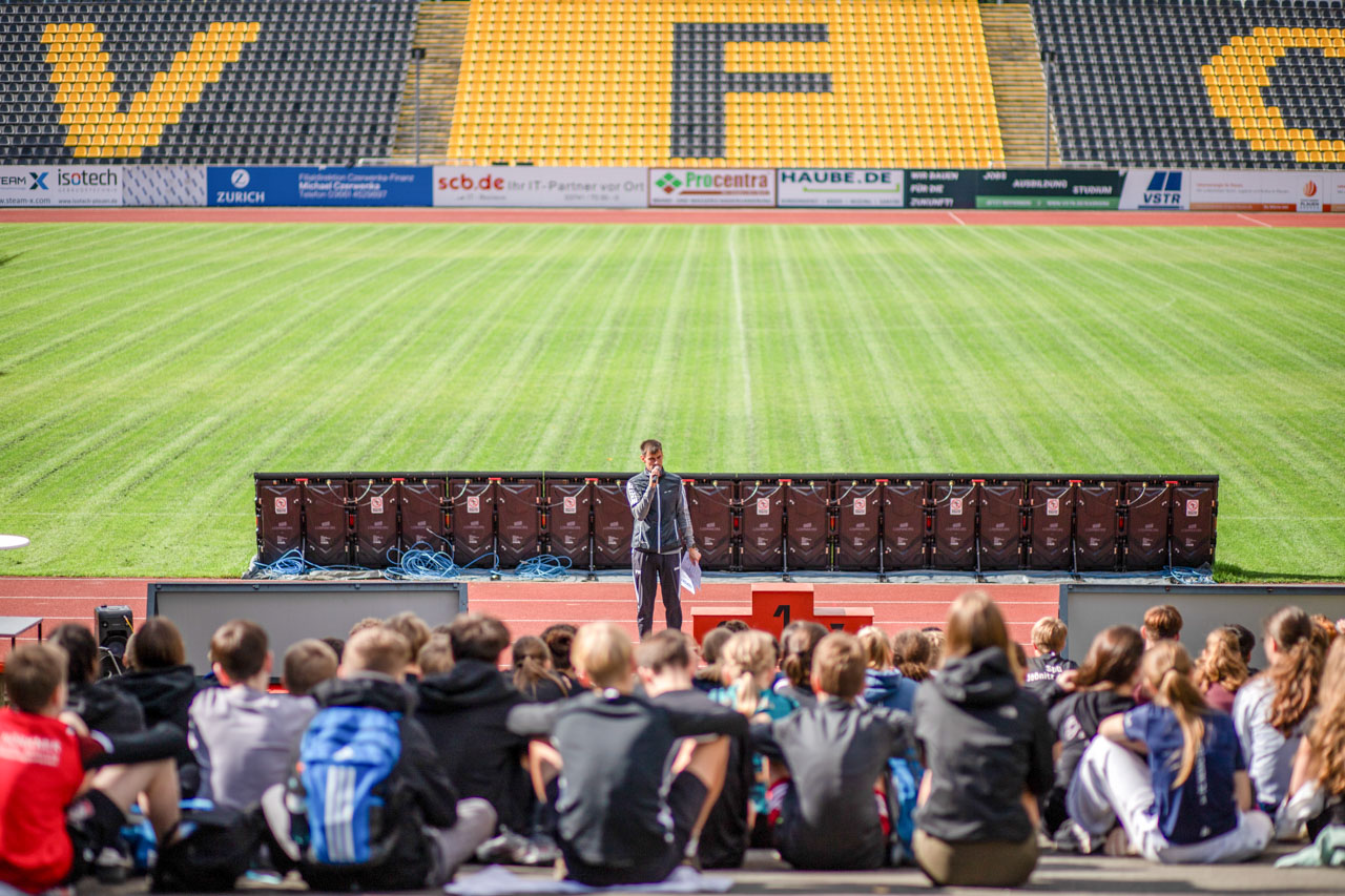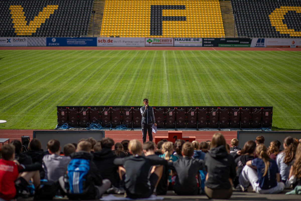 Schon beim Treffen und Einlaufen der Klassen ins Stadion war die Anspannung und Vorfreude auf einen