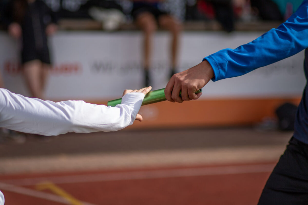 gegeneinander antreten und der Stab Runde für Runde durch das Stadion wandert, verwandelt sich die