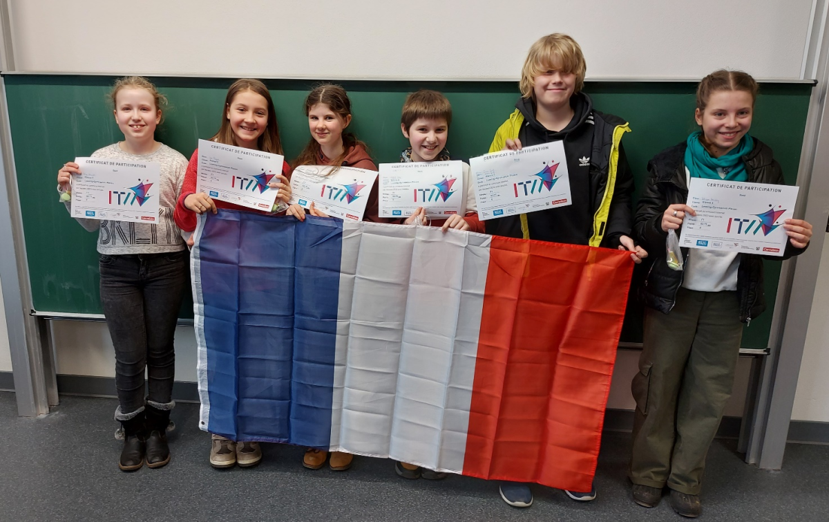 Strahlende Gesichter zur Siegerehrung beim Internet-Teamwettbewerb Französisch