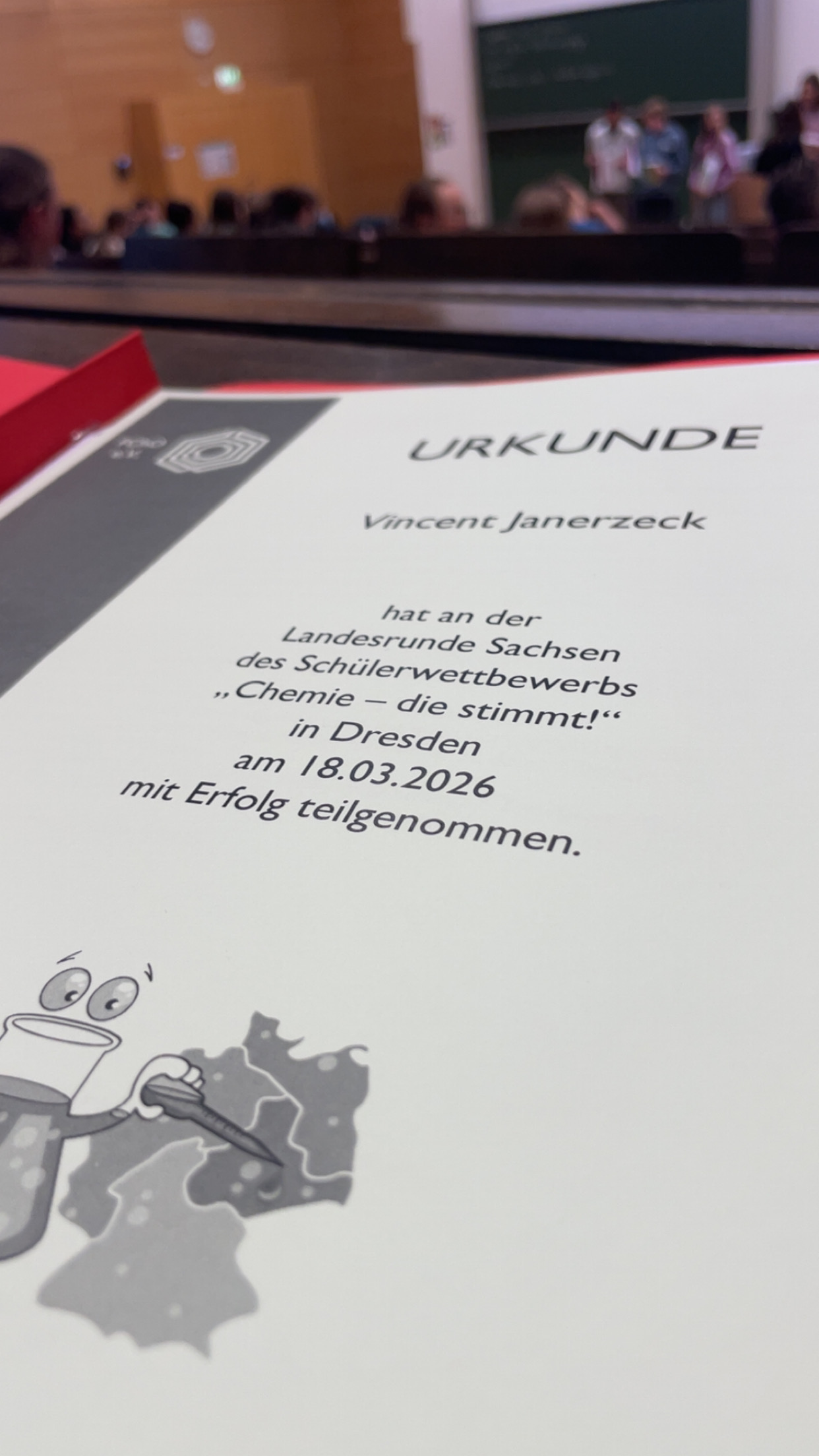Am 18.03. war ich in Dresden zur 2. Runde vom Chemie Wettbewerb „Chemie – die stimmt“.