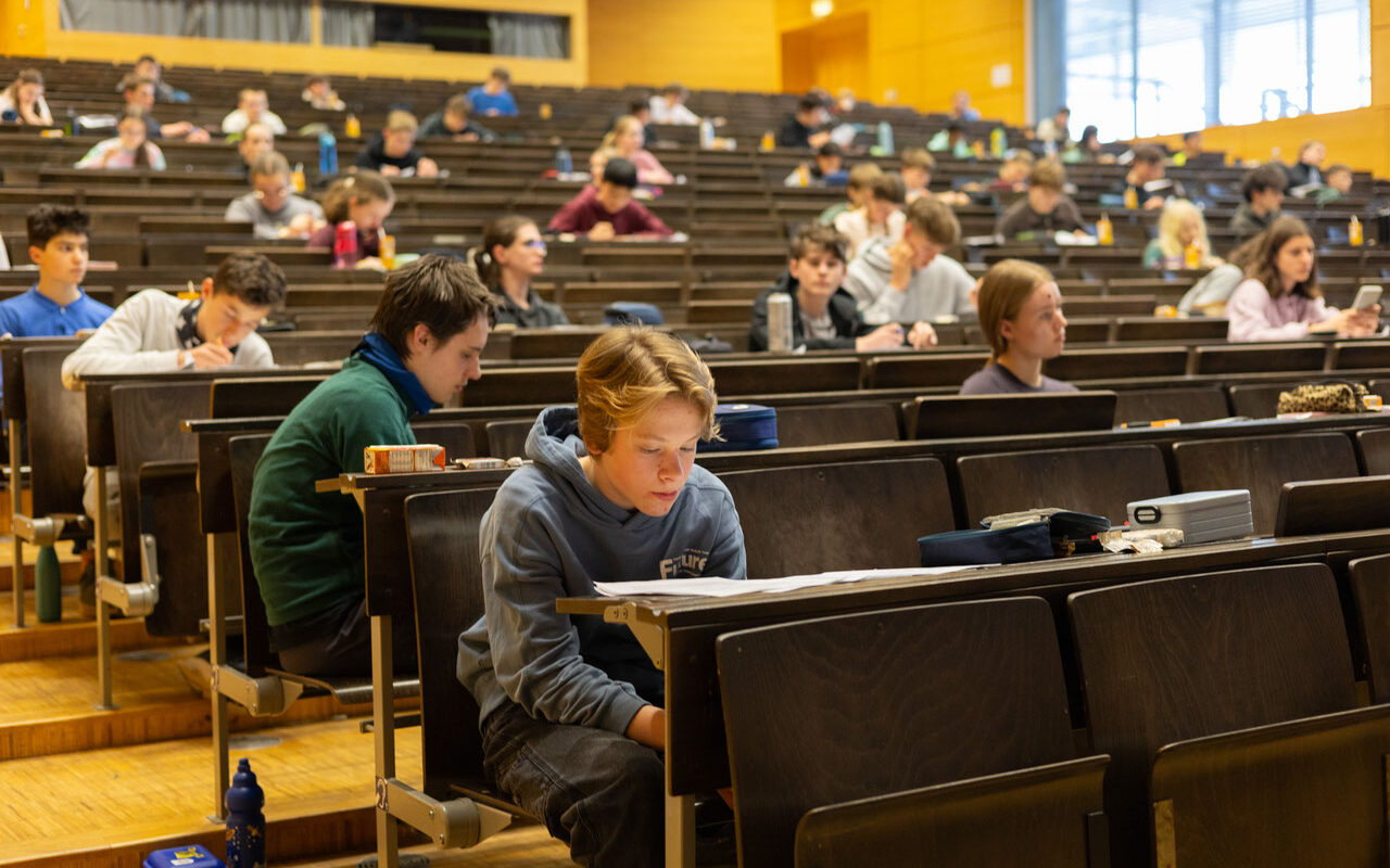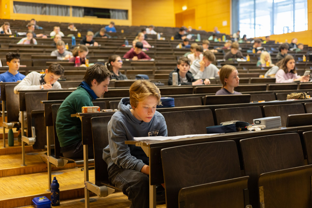 Der Tag begann mit einer 2 1/2 Stunden langen Prüfung. Nach der Prüfung gab es Mittagessen in der Mensa. Danach dürften die Teilnehmer zwei Vorträgen über Metall-Organische-Verbindungen und Proteinfarbstoffe hören, während dessen wurden die Prüfungen korrigiert.